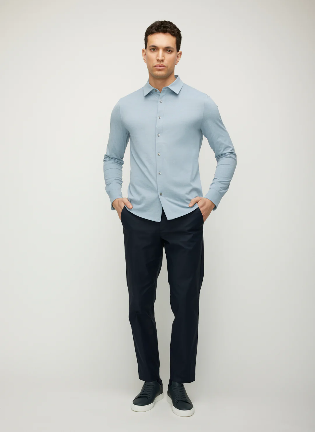 An elevated men's button-up shirt with a tailored slim fit. Move freely from work to play in this wardrobe staple, thanks to modern functional details like wrinkle resistance, four-way stretch, flattering back seams, and an added pocket. This updated classic fits in everywhere youāre headed.