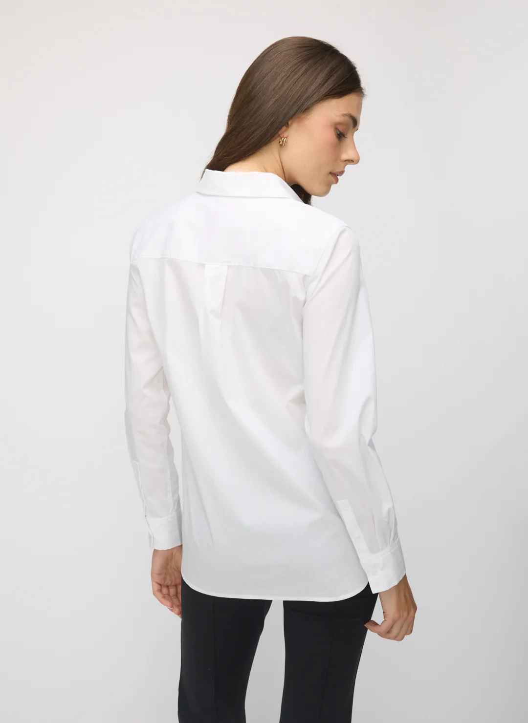 A timeless poplin women's button-up shirt designed for making moves. Made with our easy-care PopTec fabric thatās lightweight, cooling, and quick-dry, this cotton blend button-up has a classic fit with added stretch for effortless wear. Whether you pair it with our Greenwich Relaxed Fit Blazer or wear it buttoned up or down, tucked in or out, this versatile essential will simplify your style and expand your options.