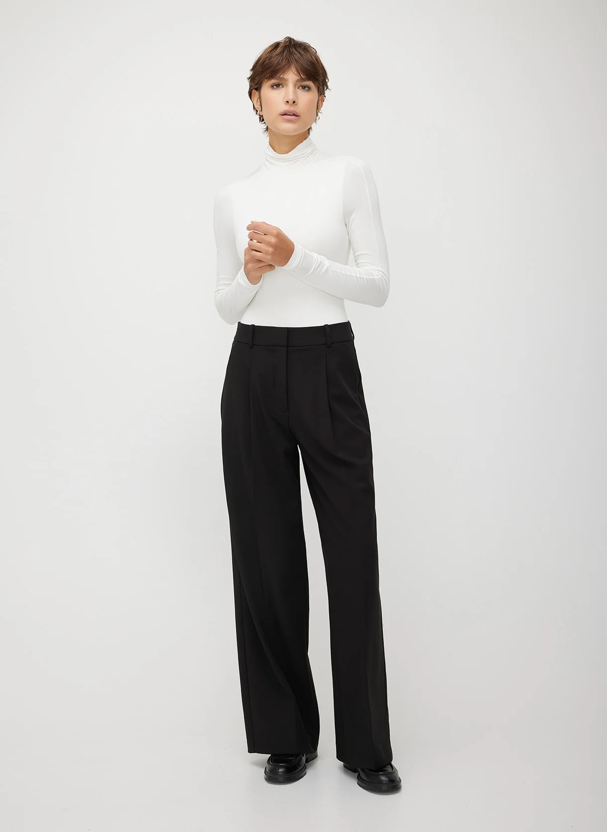 Look instantly put together with this timeless workwear style. A women's high rise, wide leg pant made with our recycled Soft Suit fabric that is shape retaining and soft to the touch. Crafted with classic workwear details like slanted pockets, back welt pockets and subtle shaping details like front pleated and back darts. These pants will elevate your every day in comfort and style.