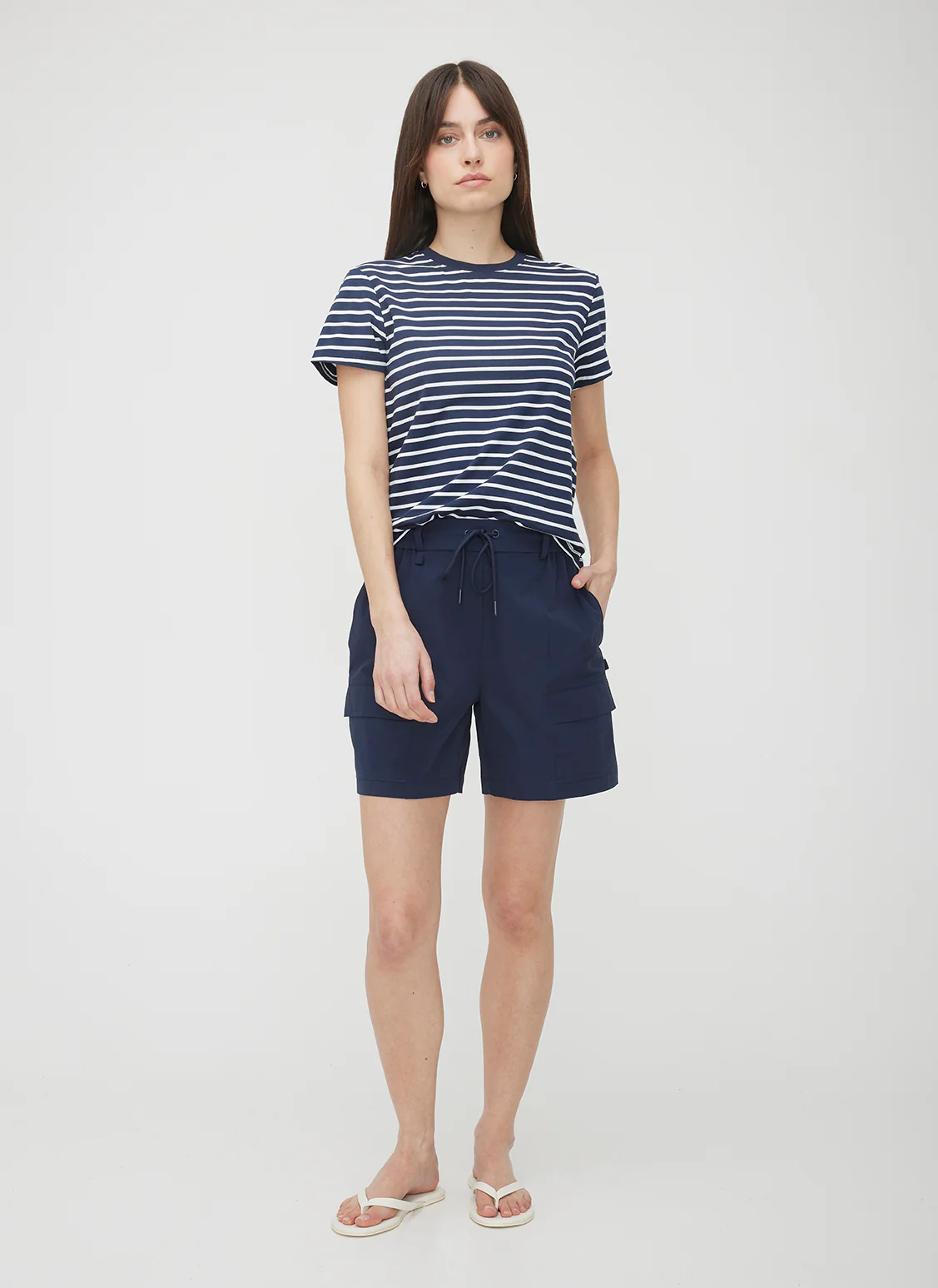 A perfect-fitting crewneck women's tee with a classic fit and high-tech details for modern life on the go. Silky-to-the-touch and easy to care for, this 24/7 staple has added stretch and shape retention thanks to the functionality of super-soft prima cotton.
