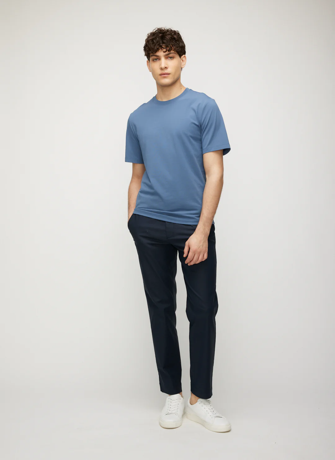 A breathable classic cotton men's tee enhanced with four-way stretch so you can move freely throughout your day. Reinforced seams mean this tee will hold its shape and help you go the distance. With an ultra-soft touch, this naturally moisture-wicking t-shirt is your new well-dressed yet casual staple.